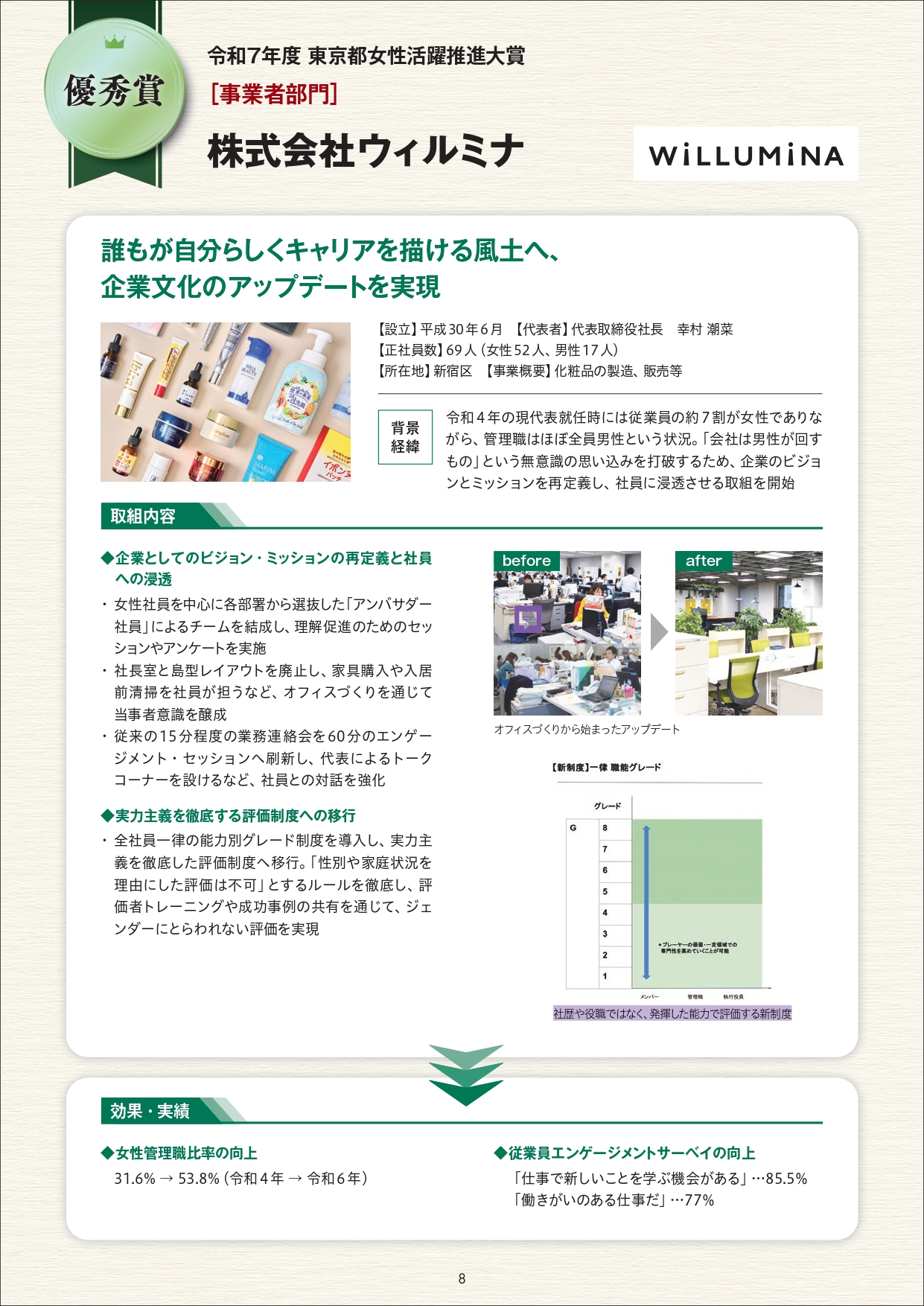 女性活躍推進大賞におけるウィルミナの評価ポイント
