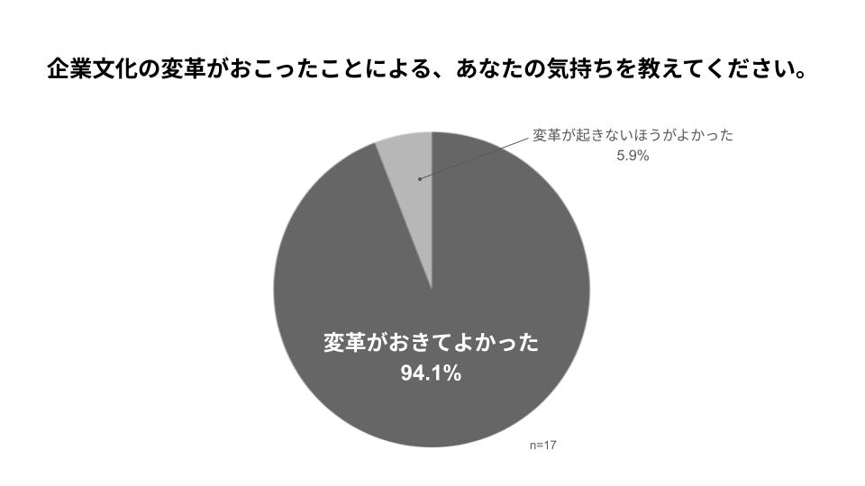 2026年1月に行った社内アンケートでは、ウィルミナになったこの3年間で「企業文化が非常に変化した」との回答が全体の8割を占めました。また、9割の社員が「変革がおきてよかった」とも回答しています。